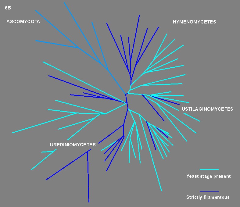 As shown in Fig. 5, the realm of dimorphic basidiomycetes is extremely diverse and is distributed among the proposed three classes of the Basidiomycota: Urediniomycetes, Ustilaginomycetes and Hymenomycetes (Swann and Taylor 1993, 1995a, b,c).